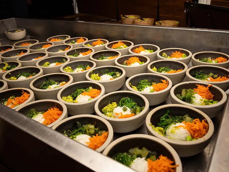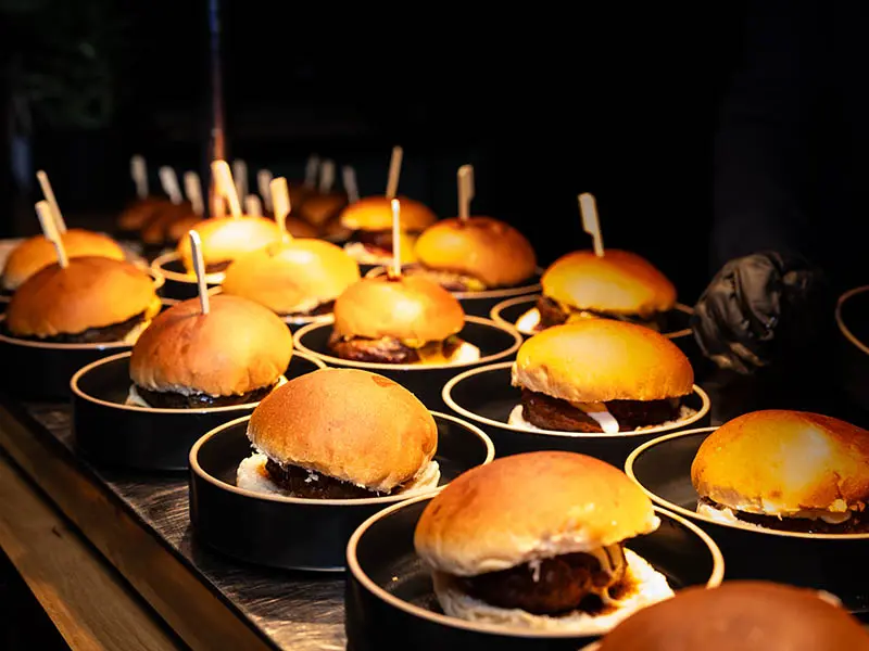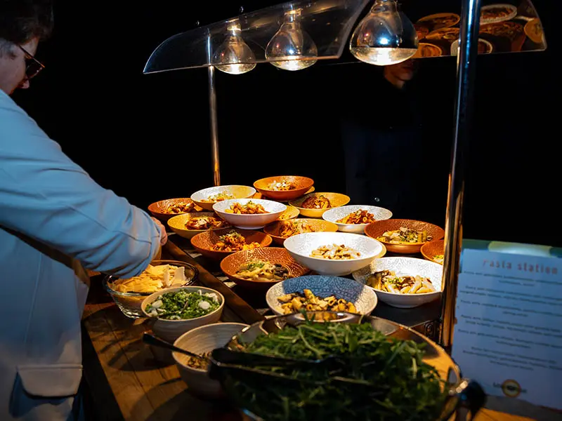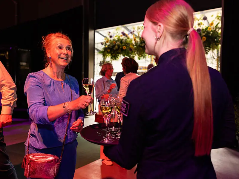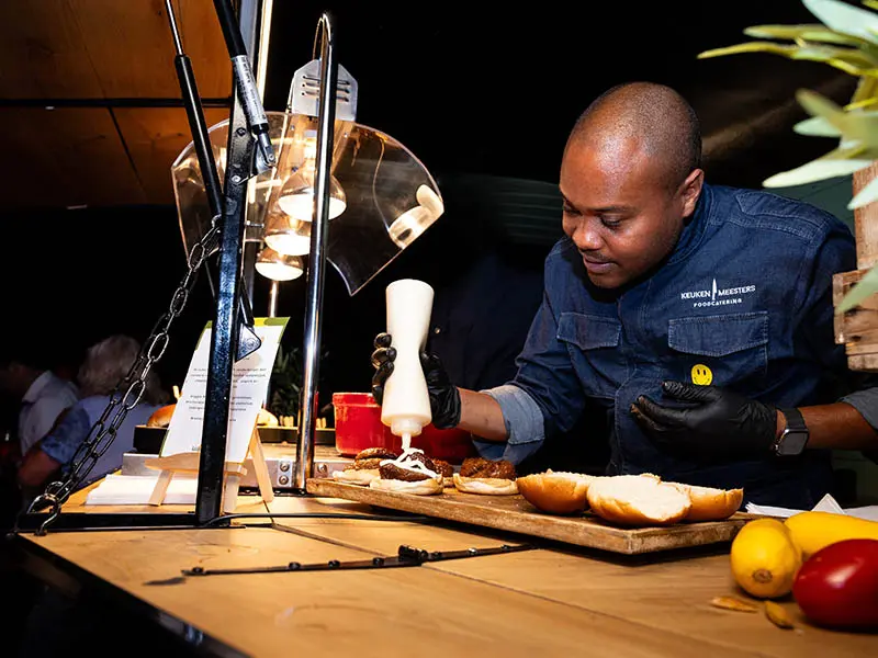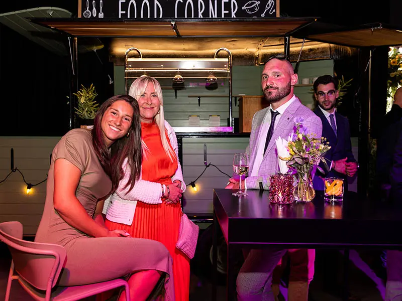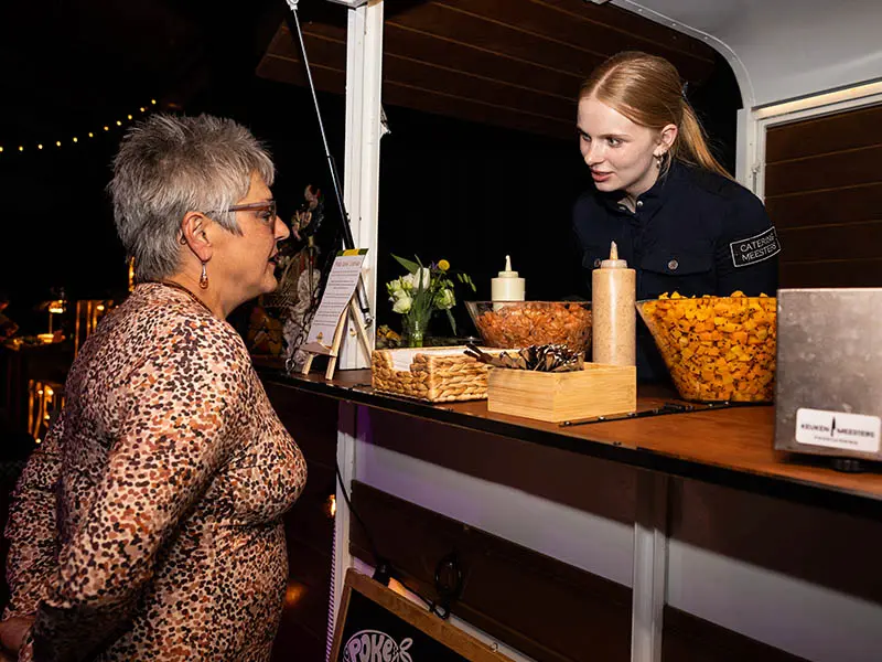 Voor het diner stonden de foodtrucks klaar, waar iedereen zijn eigen keuze kon maken. Tijdens de avond liepen wij rond met drankjes en snacks.