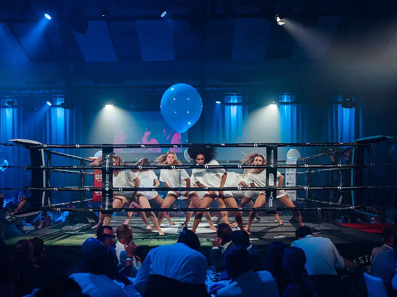 Samen met lokale partners werd een indrukwekkende avond neergezet waarin sport en beleving samenkwamen. Terwijl in de ring de spanning opliep tijdens de bokspresentaties, werden de gasten verzorgd met een lokaal driegangendiner dat perfect was afgestemd op het programma.