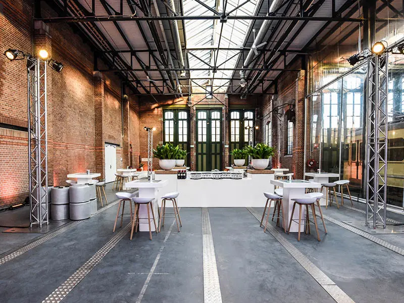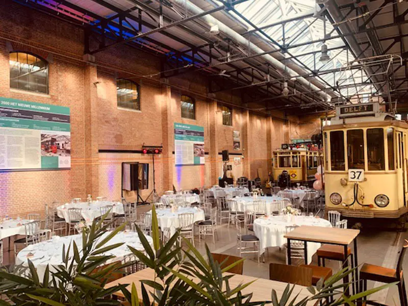 De Remise Den Haag is een voormalig tramdepot in het centrum van de stad, met een industriële uitstraling en hoge, open ruimtes.